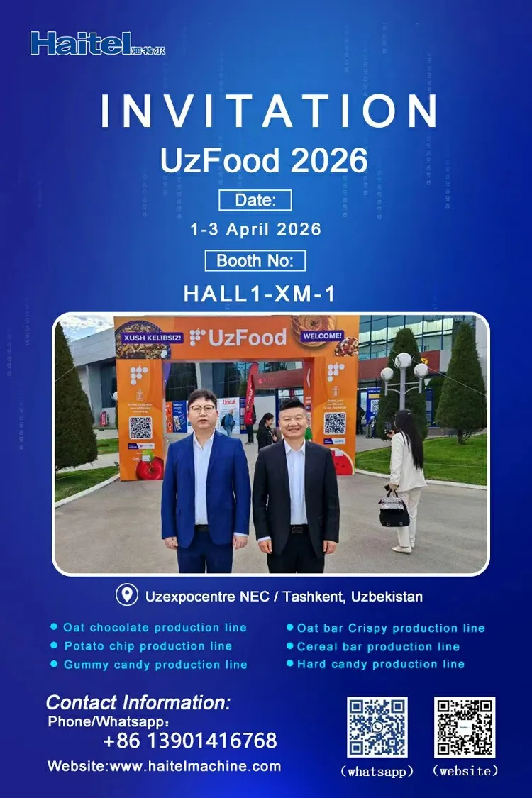 ООО Цзянсу Хайтел Машинери является профессиональным поставщиком интеллектуальных комплексных решений для перерабатывающих и упаковочных линий пищевой и фармацевтической промышленности. Основные направления производства включают оборудование для изготовления и упаковки злаковых батончиков, энергетических батончиков, протеиновых батончиков, кондитерских изделий, злаковых хлопьев, картофельных чипсов, овсяного шоколада, шоколадной продукции, печенья и других снэков.Компания обладает значительными экономическими и техническими ресурсами, оснащена современным оборудованием и объединяет команду высококвалифицированных специалистов в области разработки, проектирования, производства и маркетингового обслуживания пищевого и упаковочного оборудования.