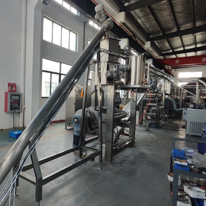 Данная линия, разработанная компанией «Цзянсу Хайтээр Машинери», представляет собой новейшую полностью автоматизированную линию по производству комплексных картофельных чипсов. Процесс включает автоматические операции смешивания сырья, прессования тестового полотна, штамповки, обжарки во фритюре, приправления, охлаждения и транспортировки, реализуя полный производственный цикл от сырья в форме порошка до готового продукта. Одновременно, в сочетании с новейшими разработками компании — механизмами автоматического измельчения и рециклинга, а также системой фильтрации фритюрного масла, эффективно реализуются функции рециклинга обрезков и фильтрации масляного осадка.